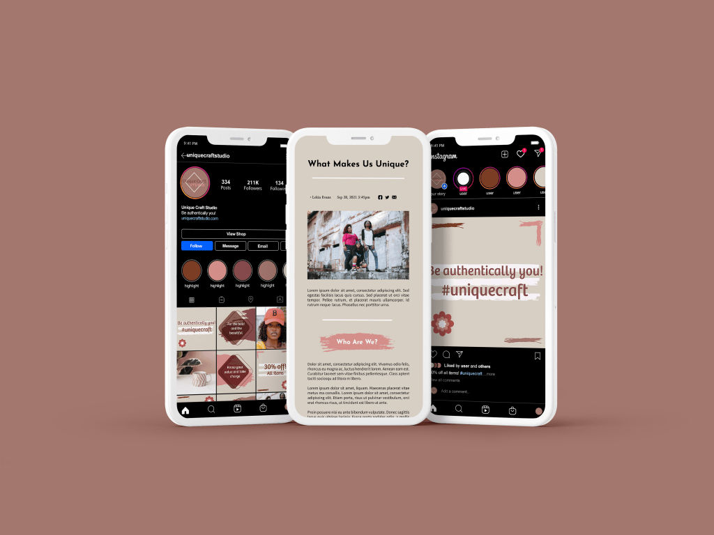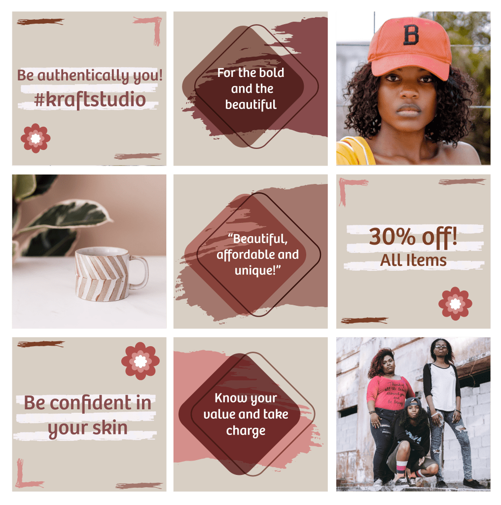 Kraft Studio is a developed brand aimed towards women that sells apparel such as shirts, hats and mugs. This company uses social media as a way to attract customers to their products by using inspiring quotes and provides images of their various products. There is also a blog site written to give current and potential customers more insight on their mission. The Instagram templates and blog page also gives them a sense of the style and purpose of the brand and their products.
