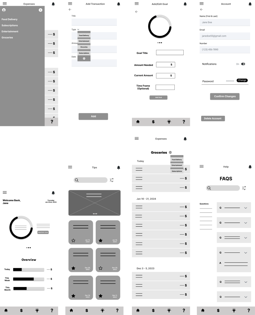 The goal is for the app to be easy to navigate and understand while also keeping the user engaged and involved in creating their budgeting goals.